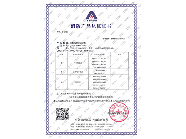 | 滅火劑名稱(chēng) | 七氟丙烷(HFC-227ea) |